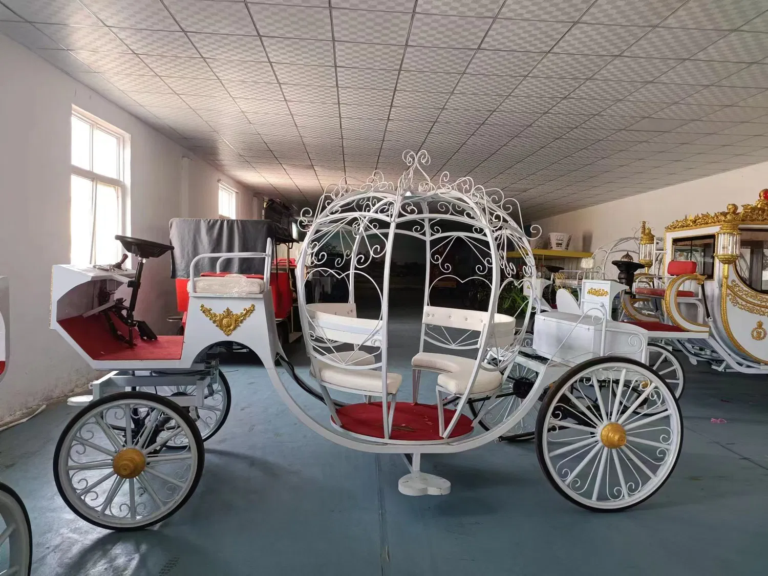 FAQ: 1. Can you produce the horse drawn carriage according to my own size? Yes, we can customize according to the size you request. 2. How many sets of horse carriage that a container can contain? It depends on the kind of carriage you choose; different horse carriages have different size. 3. Could you produce for me not a horse drawn horse carriage? I don't have a horse and I don't want to pull the horse with a motorbike. Yes, of course we can produce for you an electric horse carriage with LED lights, high quality Car Audio, etc. 4. What are the materials for the carriages? Wood, leather, plastic? I assume the materials are treated for all weather conditions? The horse carriage is made of Q235B steel, of course it is difficult for it to be corroded and it fits all the weather worldwide.