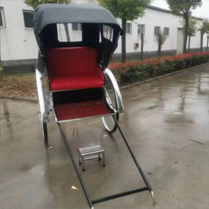 Fabricante de fábrica de rickshaw de tracción manual, Carrito de dos ruedas con forma de rickshaw, antigua Shanghái en la República de China, rickshaw retro de tracción humana, rickshaw japonés, rickshaw de pasajeros para lugares pintorescos, rickshaw para fotografía de bodas, rickshaw para exhibiciones Carro de triciclo de 2 ruedas con tracción humana